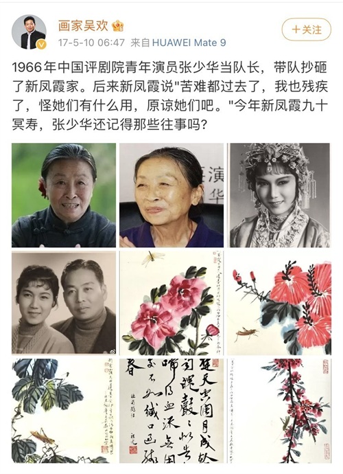 但这件事的发酵,却是在距离今天4年前的2017年,新凤霞已经去世20年,吴欢已经是64岁的老人,著名画家。