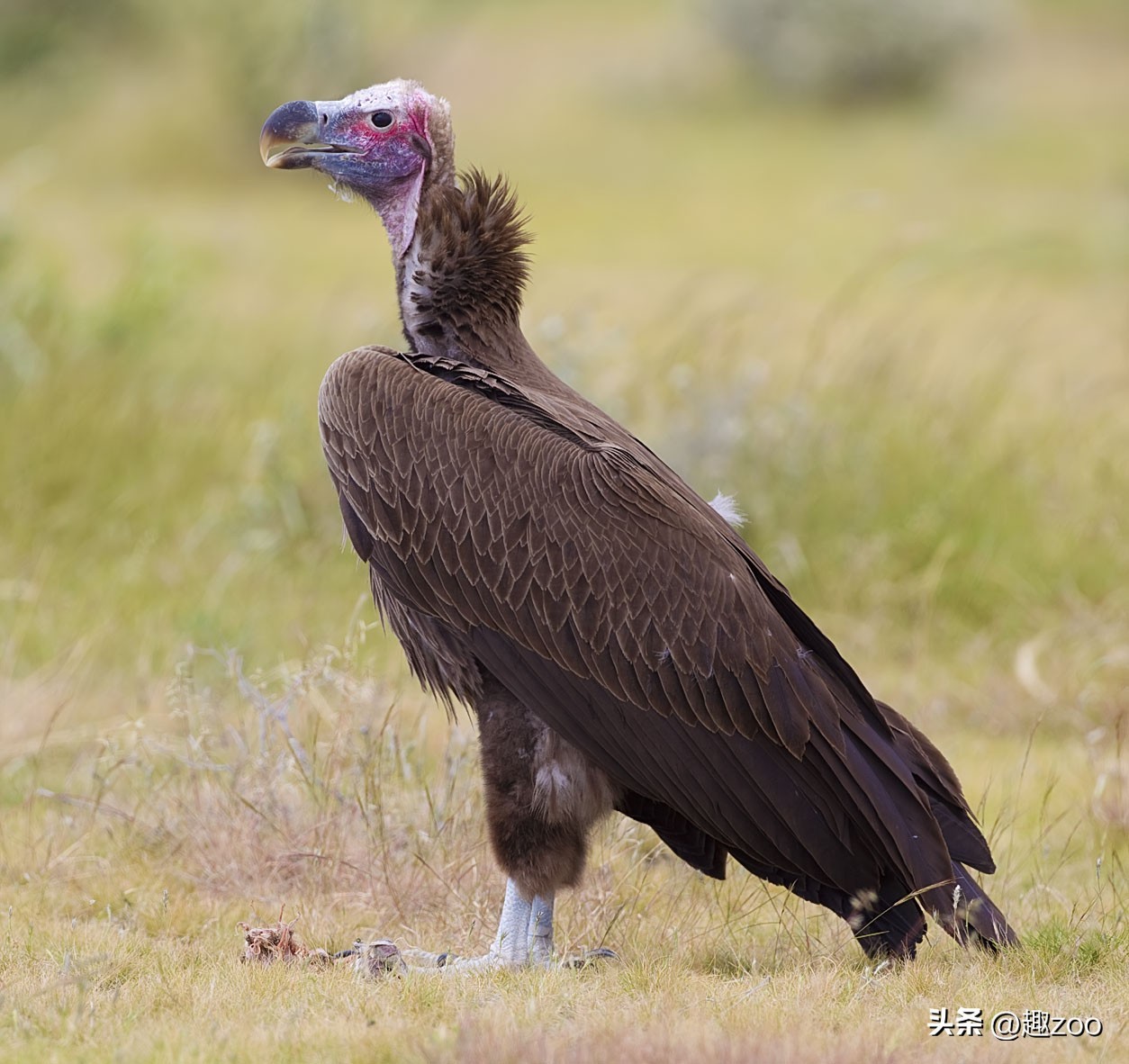肉垂秃鹫,是非洲大陆上最大的秃鹫之一,体长约1米,展翼可达2.7米。它因为头部两侧悬垂着粉色的肉垂而得名。肉垂秃鹫不仅个头庞大,身体强壮,而且非常好斗,战斗力也相当强大。它是唯一一种能够撕开猎物毛皮的秃鹫。虽然肉垂秃鹫主要以动物尸体为食,但它们也喜欢抢夺其他动物的猎物,因此在草原上被称为恶霸。有时,它们也会主动捕猎食物,像黑斑羚和火烈鸟就是它们的猎物目标之一。