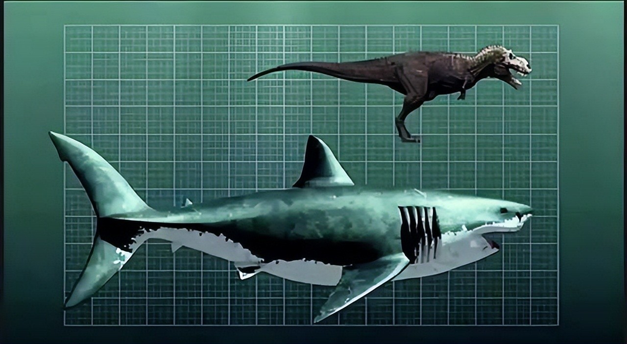 巨齿鲨和霸王龙对比