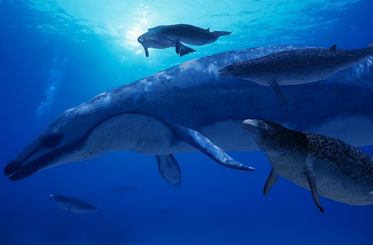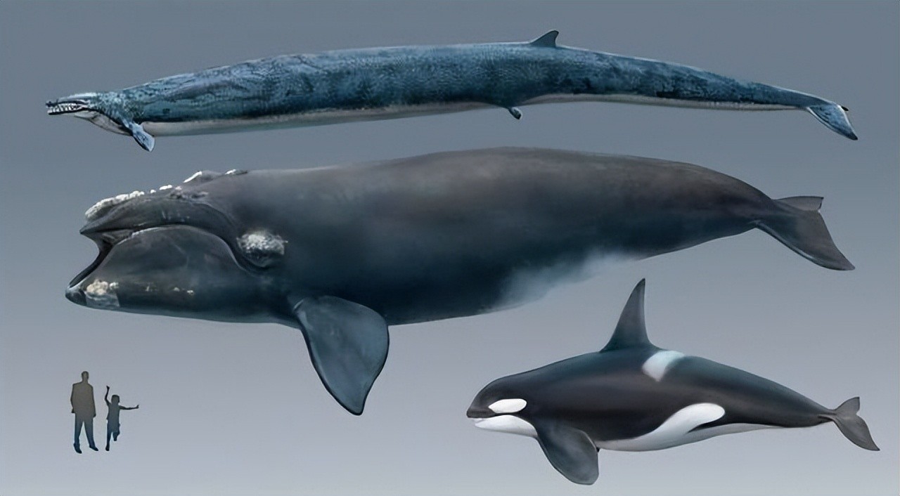 龙王鲸与现代露脊鲸、虎鲸以及人类对比