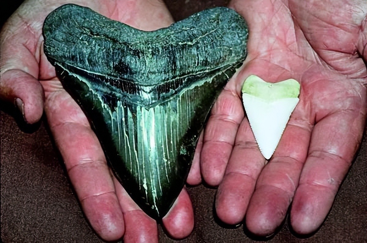 巨齿鲨牙齿和大白鲨牙齿对比