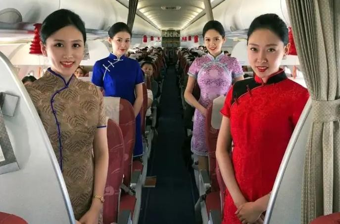 她们的旗袍装既保留了传统之美又不失现代感,真是让人赞叹不已。您要是有幸赶上这么一场特别的空中旅行一定要好好欣赏一番!