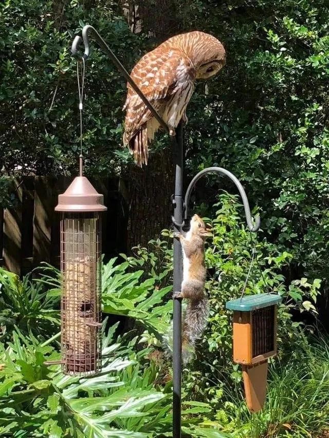 5、松鼠抬头一看,猫头鹰,你感动吗?松鼠:不敢动也不敢动