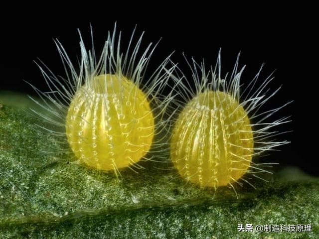 树叶上的蝴蝶卵,放大倍数7.5倍