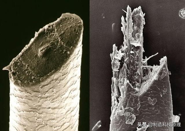 显微镜下的胡须:手动剃刀(左)和电动剃须刀(右)