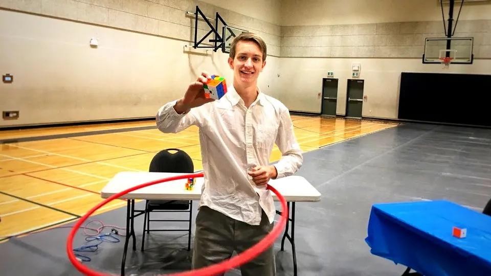 加拿大高中生挑战转呼啦圈还原最多三阶魔方世界纪录