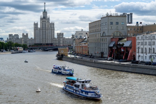5月5日,在俄罗斯莫斯科,游船在莫斯科河上航行。新华社记者 翟健岚 摄