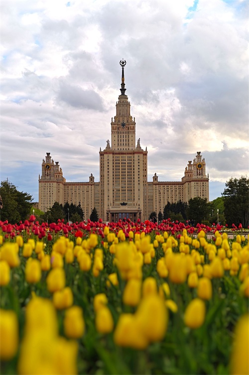 这是5月5日拍摄的俄罗斯莫斯科大学主楼。新华社记者 丁海涛 摄