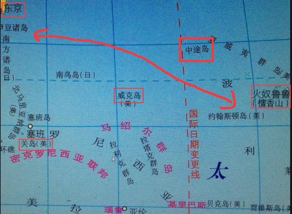 图1:中途岛在太平洋中的位置
