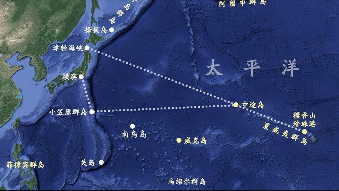 中途岛是一座无人岛屿【图3】,在十九世纪中叶前后,被美国发现并占领,由于随后发生两次世界大战,特别是,第二次世界大战,日本有侵占整个亚洲东部、东南部和太平洋地区的野心,故美国将前往日本本土地区周围的岛屿建立军事基地,特别是夏威夷群岛和中途岛,是美军集结太平洋舰队的基地和攻击前沿阵地【图4】。