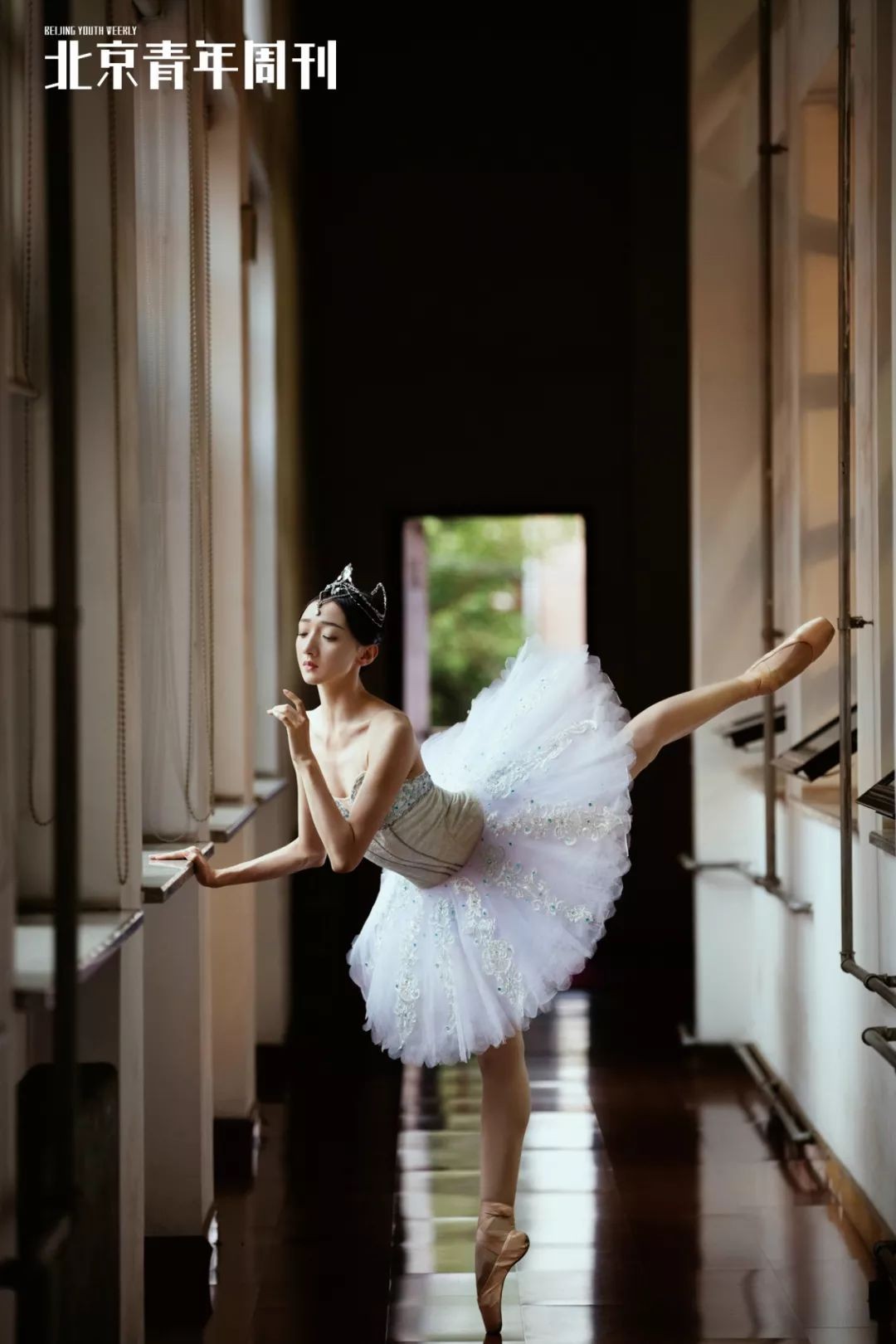 曹舒慈身穿《舞姬》芭蕾舞裙,在中央芭蕾舞团练功房翩翩起舞