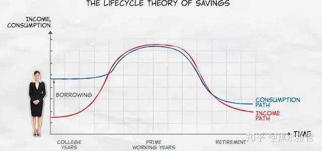 16.生命周期假说:就好比我们计划一辈子的储蓄和消费,年轻时收入低可能借贷消费,中年时收入高则积累财富,老年时依靠储蓄养老。生命周期假说就是讲人们会根据预计一生的总收入来合理分配各个年龄段的消费和储蓄。