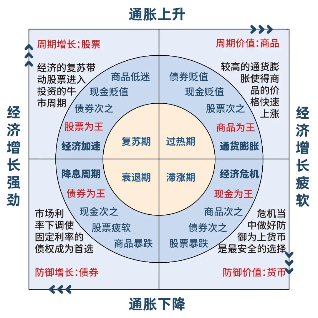 31.经济周期:就像四季变换,经济也会有自己的春夏秋冬。经济周期说的是经济活动有时会不断变强(像春天的生长),表现为经济增长、就业增加(复苏和繁荣阶段);有时又会逐渐减弱(像秋天的落叶),表现为经济萎缩、失业上升(衰退和萧条阶段)。这个过程是有规律地周而复始的。