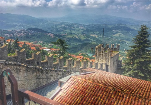 圣马力诺共和国是南欧一个非常小的山区国家,被意大利包围。它是世界上第五小的国家,面积为 61 平方公里。他们有大约 34,000 人口。由于该国是丘陵地带,其首都位于该国最高点的山顶。首都的名字也叫圣马力诺,以其有围墙的古城和鹅卵石街道而闻名。在其邻近的山峰上有 3 座 11 世纪古老的城堡式堡垒。