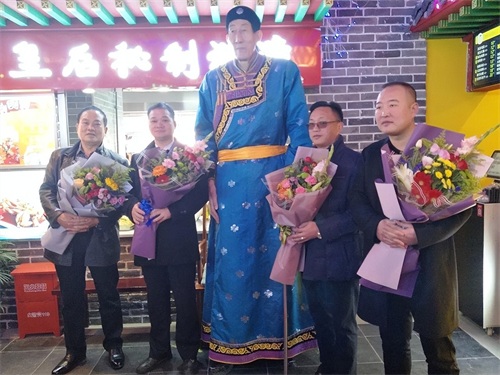 老板看到也很高兴,就找人定做了衣服和鞋子让他在进行店外的宣传工作。很多顾客进店消费并且热情的与鲍喜顺合影留念。