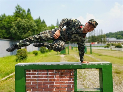 武警浙江总队绍兴支队上等兵胡一凡在训练场刻苦训练。他相信:只要坚持拼搏,总会迎来人生中的一次次跨越。 陈浩雨摄