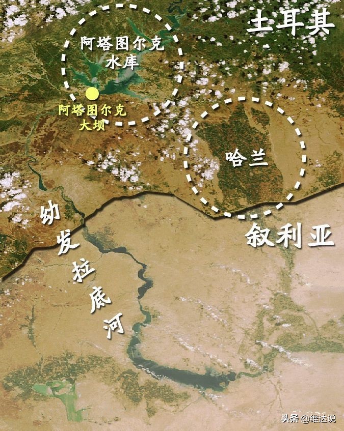 这就意味着处于两河下游的伊拉克,使用幼发拉底河和底格里斯河的河水深受中上游的土耳其、叙利亚的影响。其中叙利亚在上世纪60年代就在幼发拉底河建起了水坝,形成了水面面积达610平方公里的人工湖—阿萨德湖,与埃及修建在尼罗河河谷的“纳赛尔湖”相似,阿萨德湖筑坝蓄水后,不但盘活了幼发拉底河中游的大片荒地,还大大优化了两岸的生态环境。