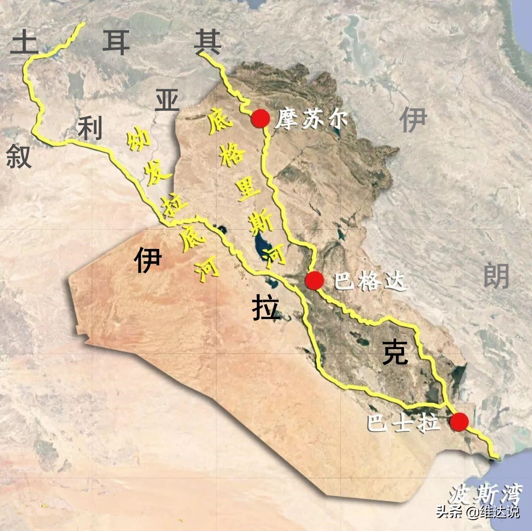 比如伊拉克的“母亲河”—幼发拉底河和底格里斯河,全都发源于土耳其的安纳托利亚高原和亚美尼亚高原,流经叙利亚,在伊拉克境内汇合成阿拉伯河后注入波斯湾。两河流域的总面积是784500平方公里(一半以上属于幼发拉底河流域),其中的45.3%在伊拉克境内,构成了伊拉克83%的国土面积。