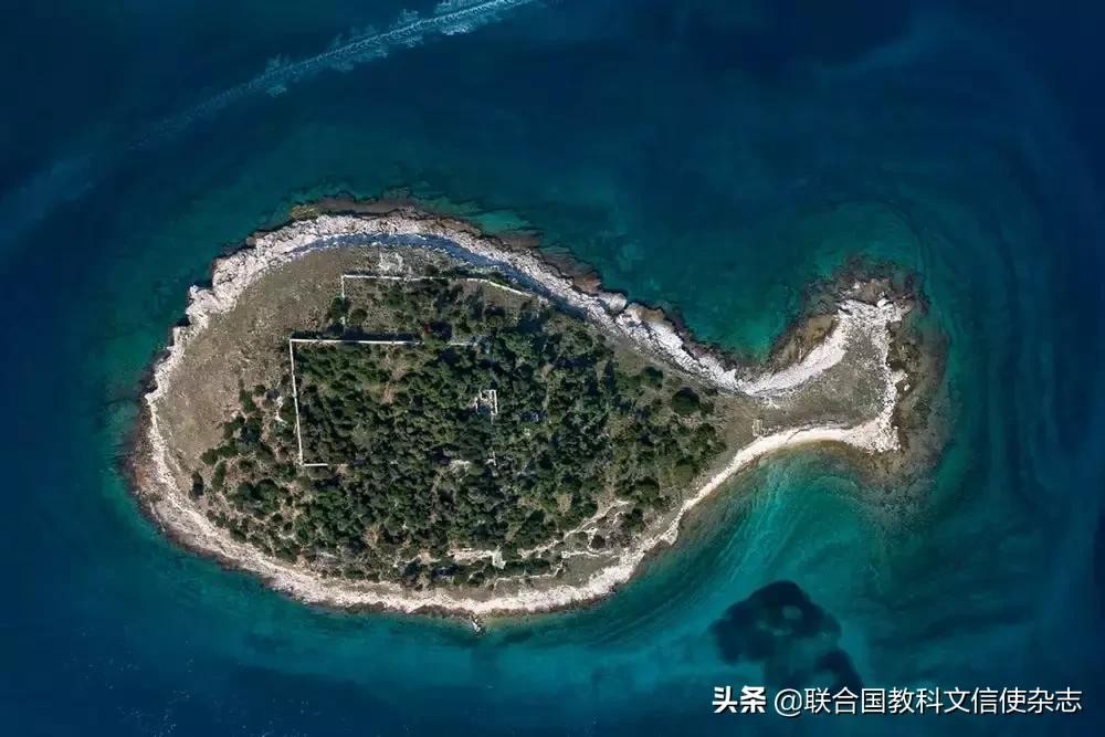 克罗地亚海岸线附近的一个鱼形岛屿©Milan Photo