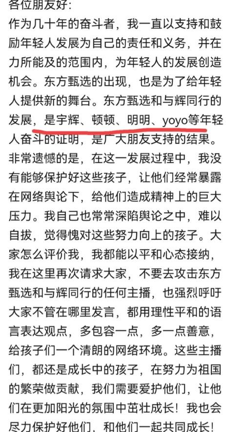 俞敏洪的道歉虽然表达了团队的诚意和决心,但并未能完全解决甄选面临的根本问题。