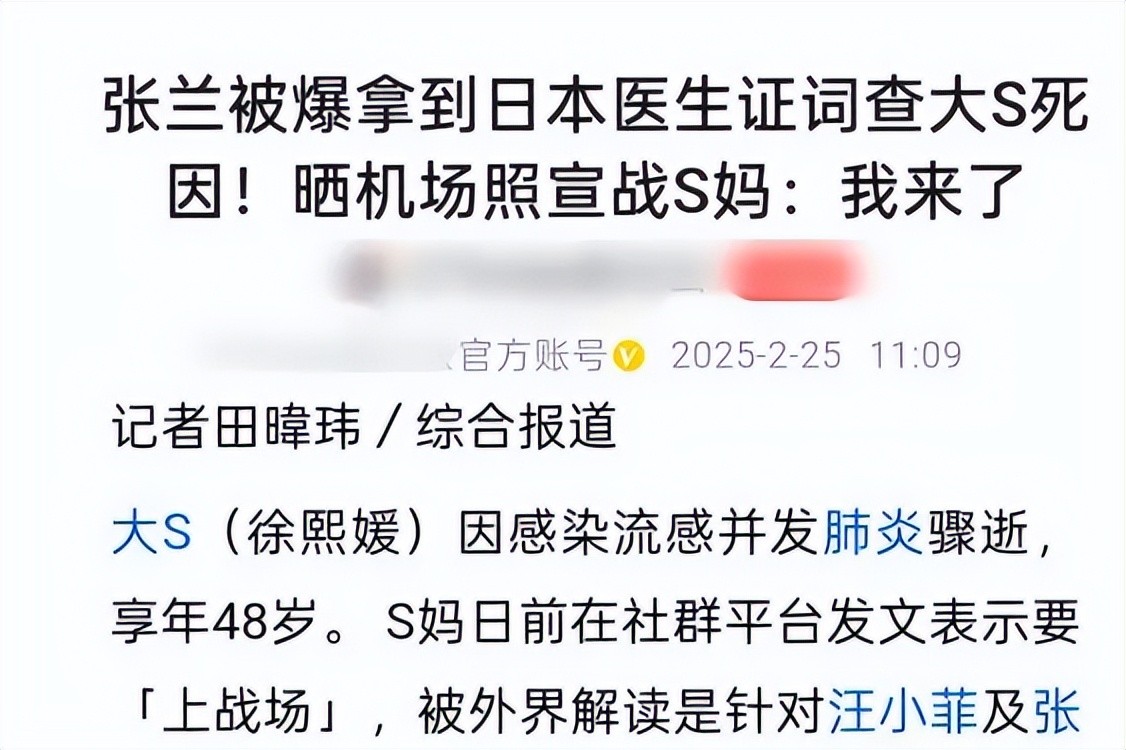 网传张兰去日本查大S的死因