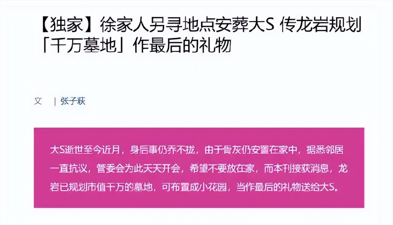 网传龙岩公司赠送大S墓地