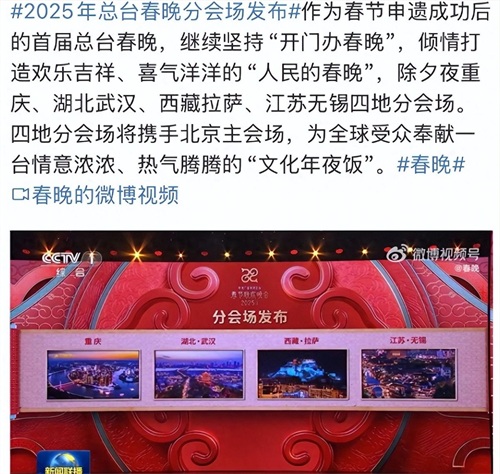 12 月 24 日,今年春晚的四个分会场 —— 重庆、武汉、拉萨、无锡正式公布。