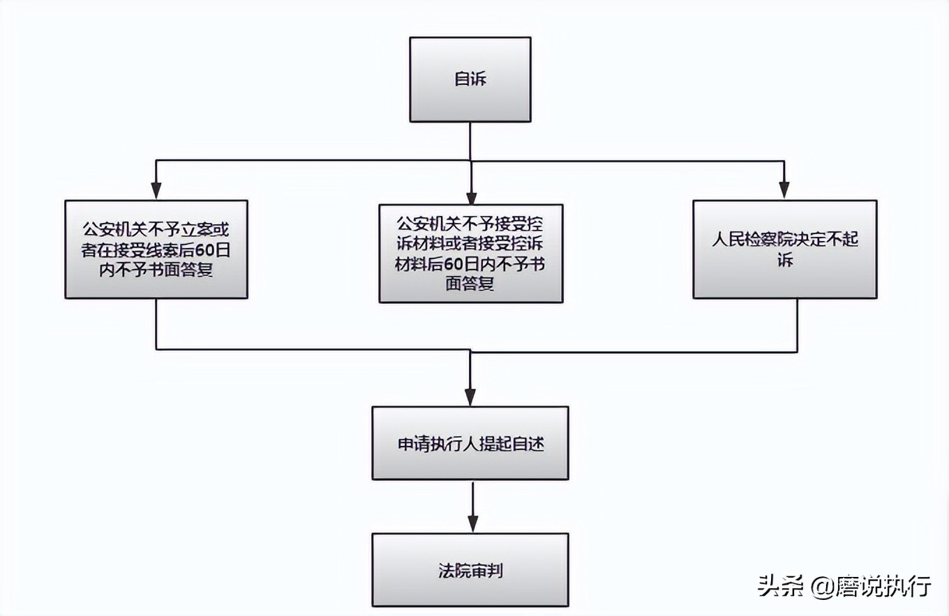 根据相关的法律规定,申请人提起自诉的前提性条件:必须向公安机关寻求过救济。申请人可以自行向法院提起拒不执行判决、裁定罪自诉案件有以下三种情形,具体流程如下: