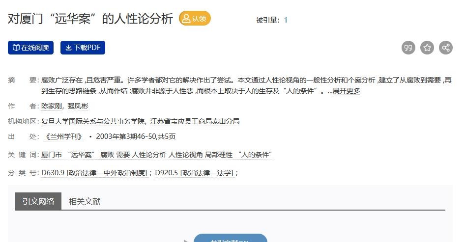 参考资料:[1]陈家刚,强凤彬.对厦门“远华案”的人性论分析[J].兰州学刊,2003(3):46-50