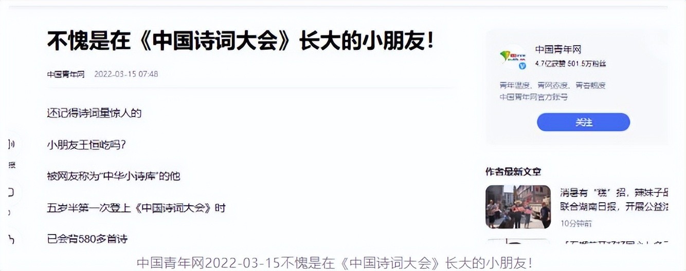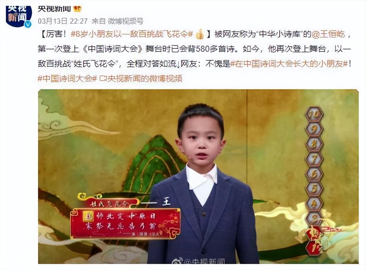 通过这个节目,后来王恒屹被人们称为“行走的中华古诗库”