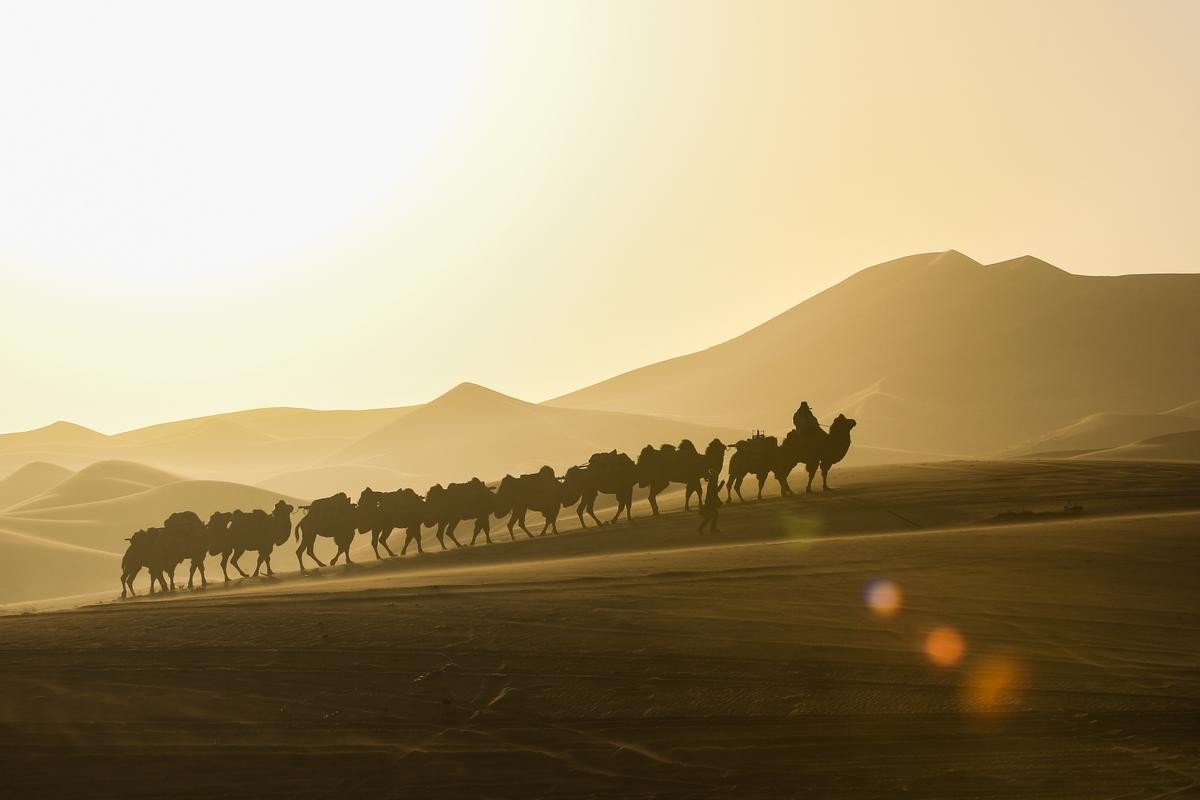 驼伕一边清点专家人数,一边检查着骆驼,看是否被沙暴刮走或者被沙人杀害。所幸,5名专家、15头骆驼都在。驼架上的货物也无一丢失。