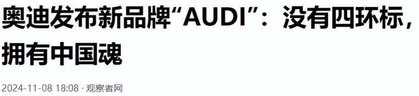 观察者网2024年11月8日---奥迪发布新品牌“AUDI”:没有四环标,拥有中国魂