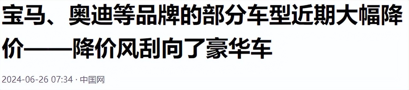 中国网2024年6月26日---宝马、奥迪等品牌的部分车型近期大幅降价——降价风刮向了豪华车