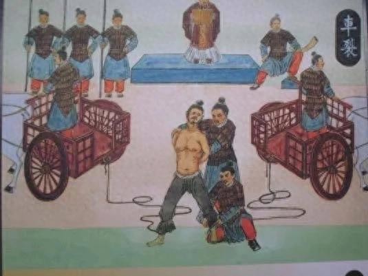 据《隋书·刑法志》记载,北齐时死刑有四等,最重的是车裂。北周时死刑分为五等,最后一种是车裂。这都是朝廷法律上明文规定的。隋朝建国后,隋文帝杨坚于开皇元年对刑律进行了改进调整,废除枭首、鞭扑、车裂等酷刑。可到了隋炀帝杨广执政的时候,又重新使用各种酷刑。那时候,杨玄感因为策划动乱,失败后被抓,炀帝先杀了他,又把他九族以内的亲戚全部杀掉,他的同谋,有的被车裂,有的被砍了头,有的被截断手足,有的用乱箭射死,有的在处死之后又被文武百官分割死尸的肉来吃,极其残酷。