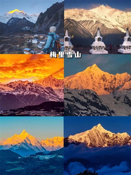 梅里雪山,被誉为中国的“最美十大雪山”之一,犹如一颗璀璨的明珠,镶嵌在大地母亲的怀抱中。在雾浓顶、飞来寺观景台,我见证了那举世罕见的“日照金山”奇观。在晨光的洗礼下,雪山仿佛被镀上了一层金色的光辉,与周围的云雾相互辉映,宛如一幅绝美的画卷。这不仅仅是一次视觉的盛宴,更是一次心灵的洗礼。