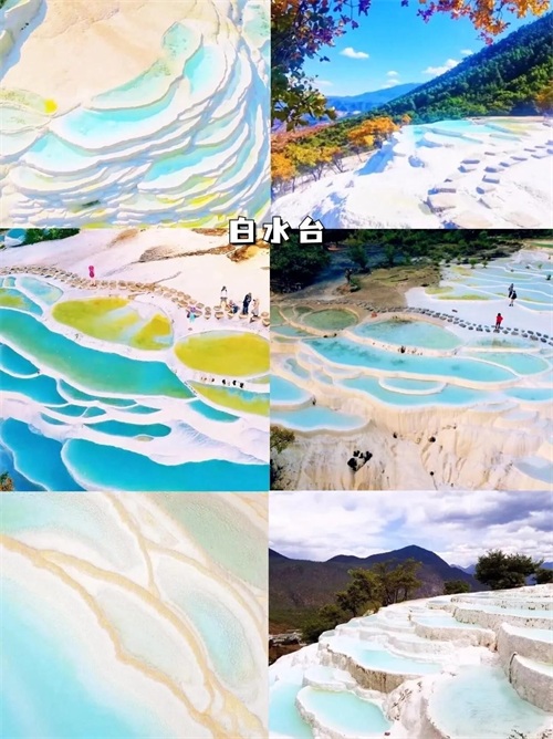 白水台,中国的棉花堡,宛如大自然精心雕刻的艺术品。雪白的梯田如梦幻般铺展,层层叠叠,犹如天然的宝石堆砌。每一层都蕴含着丰富的矿物质,散发着迷人的光泽。站在这里,你能感受到大自然的神奇力量,仿佛置身于一个神秘的仙境。