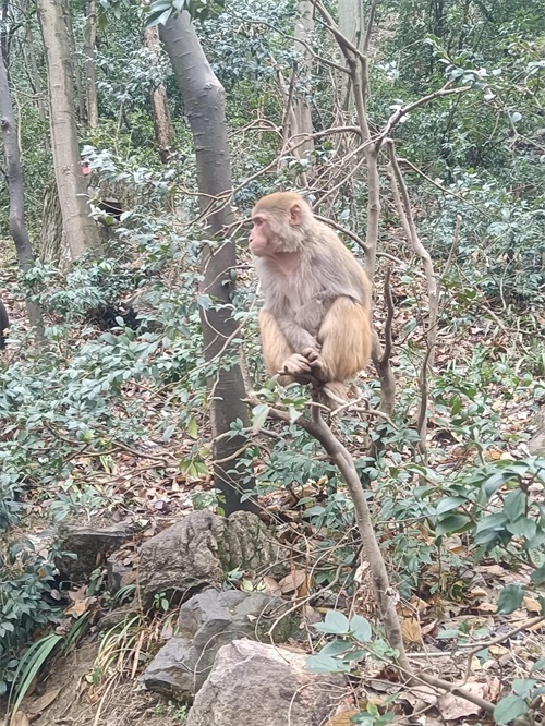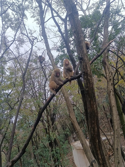 在这里,最让人难忘的莫过于那些活泼可爱的猴子们。黔灵山的猴子们,嬉戏打闹间尽显灵动与可爱。它们或在树梢间跳跃,或在地上追逐,每一个动作都充满了活力与趣味。这些猴子们似乎完全不怕人,甚至会主动向游客讨要食物。当然,为了保护这些可爱的小生灵,公园内设有明确的提示牌,严禁逗打、惊吓或追赶猕猴,确保了人与动物之间的和谐共处。