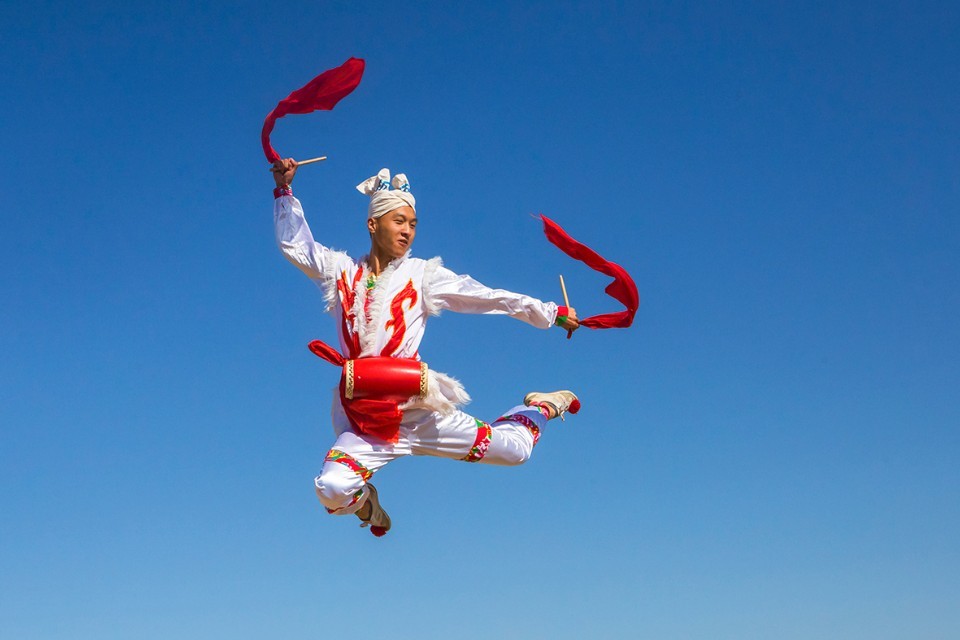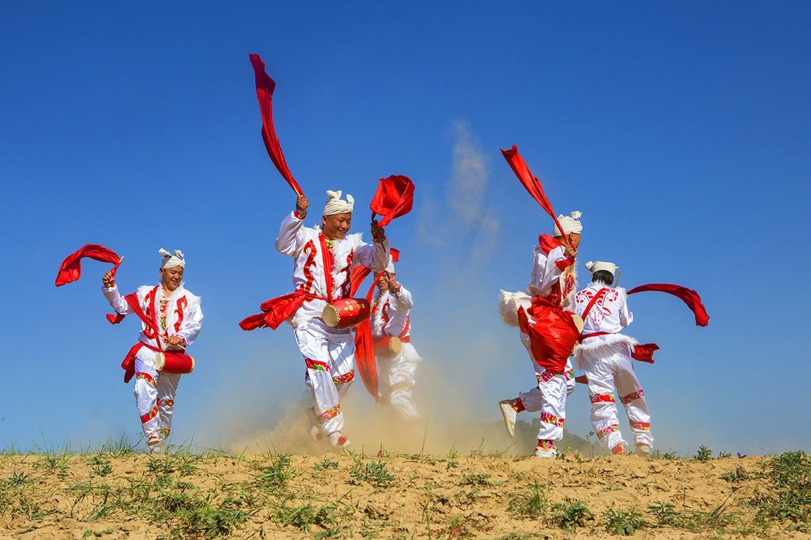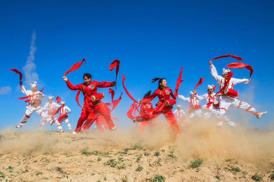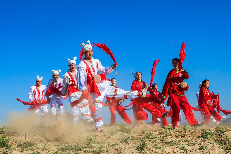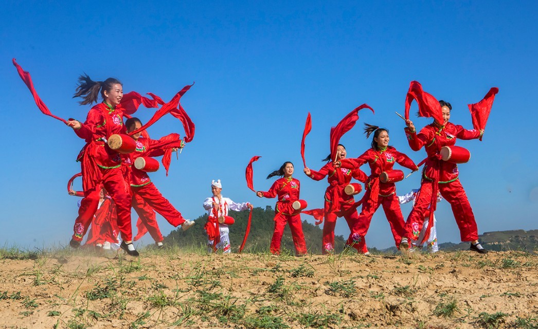 安塞腰鼓是陕西省的传统民俗舞蹈。表演可由几人或上千人一同进行,磅礴气势,精湛的表现力令人陶醉,被称为天下第一鼓。1996年,延安市安塞区被国家文化部命名为中国腰鼓之乡。 2006年5月20日,安塞腰鼓经国务院批准列入第一批国家级非物质文化遗产名录。(摄影:大海张)