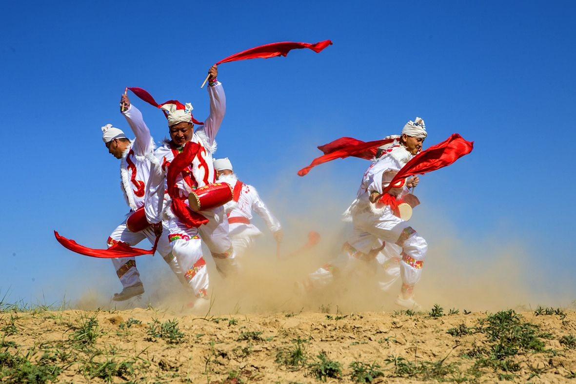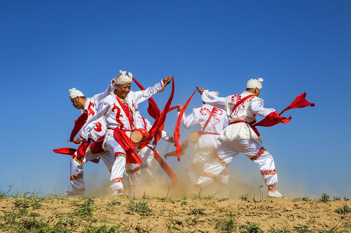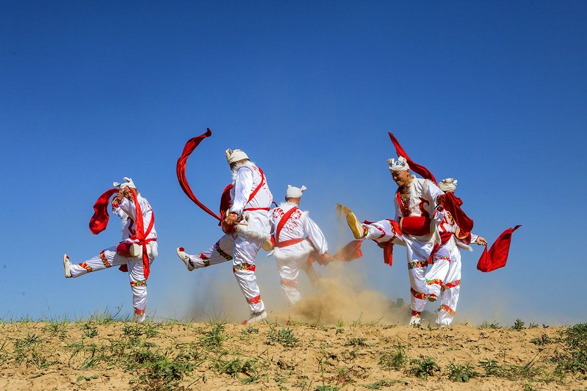 安塞腰鼓是陕西省的传统民俗舞蹈。表演可由几人或上千人一同进行,磅礴气势,精湛的表现力令人陶醉,被称为天下第一鼓。1996年,延安市安塞区被国家文化部命名为中国腰鼓之乡。 2006年5月20日,安塞腰鼓经国务院批准列入第一批国家级非物质文化遗产名录。(摄影:大海张)