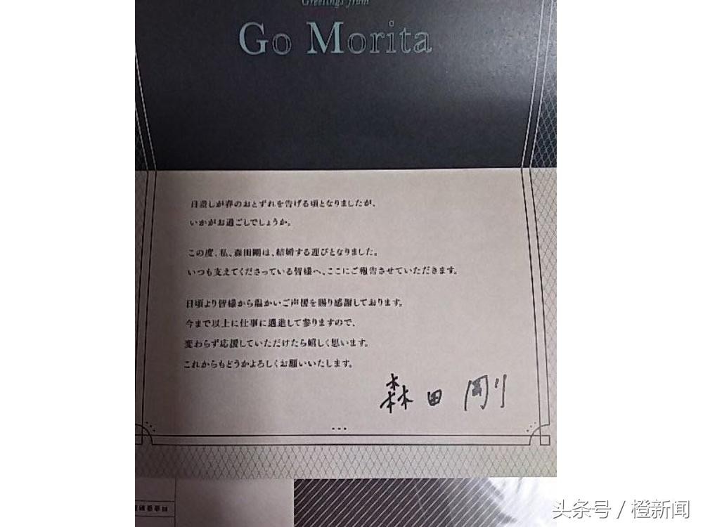 森田刚向歌迷发信公布喜讯。图:星岛日报