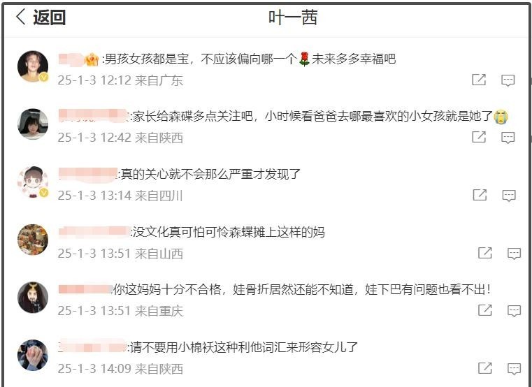 再后来,森碟改名这事儿又引发了一场小风波。大家都熟悉得不能再熟悉的 “森碟”,冷不丁听说正式名改成 “田雨橙” 了。虽说名字,就是个称呼,可对于一路看着森碟长大的观众来说,这改得也太突然了,就好比你天天喊的老街坊,突然换了个陌生名字,让人怪不适应的。有人就忍不住琢磨,这家里头是不是有什么讲究,怎么说改就改了?紧接着,森碟骨裂就医那次,叶一茜在网上晒动态,一些小细节被眼尖的网友揪住了,纷纷吐槽说这当妈的照顾得也太不细致了,这一桩桩小事加起来,田家的育儿经可就被大家放在显微镜下研究了。
