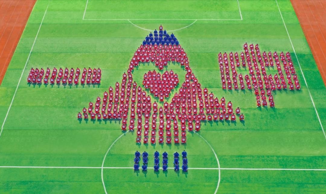 沈阳一中23届全体毕业生在升入高三时摆出的“一飞冲天”造型