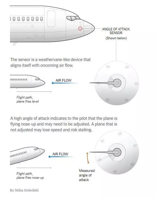 攻角传感器作用示意图 图据纽约时报