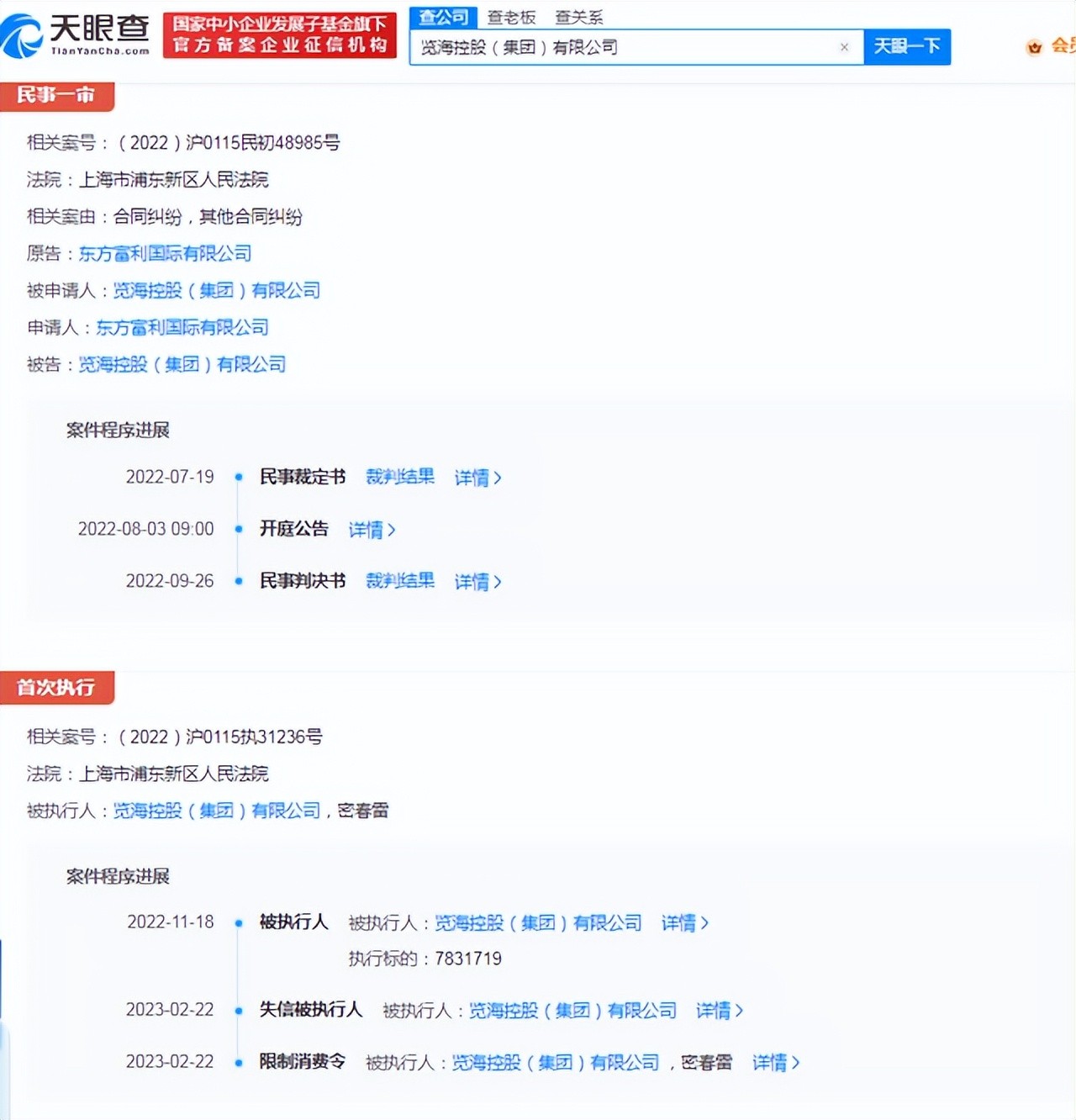 截至目前,览海控股已被多次执行,执行标的超9亿元。另外,早在2022年7月,密春雷旗下上市公司览海医疗就已被上交所予以摘牌。