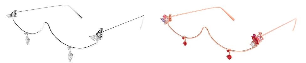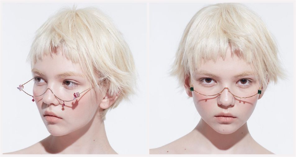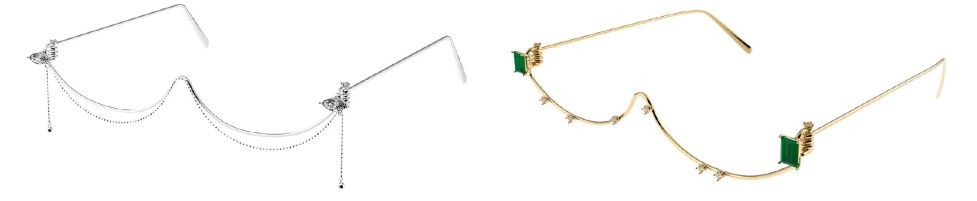 这个牌子的“眼镜”可以说是看过一次终身难忘!说是眼镜,但没有镜片,镜框也只有一半,在镜框上镶嵌宝石、珍珠,甚至是做出一些流苏装饰,每一款都设计感超强!