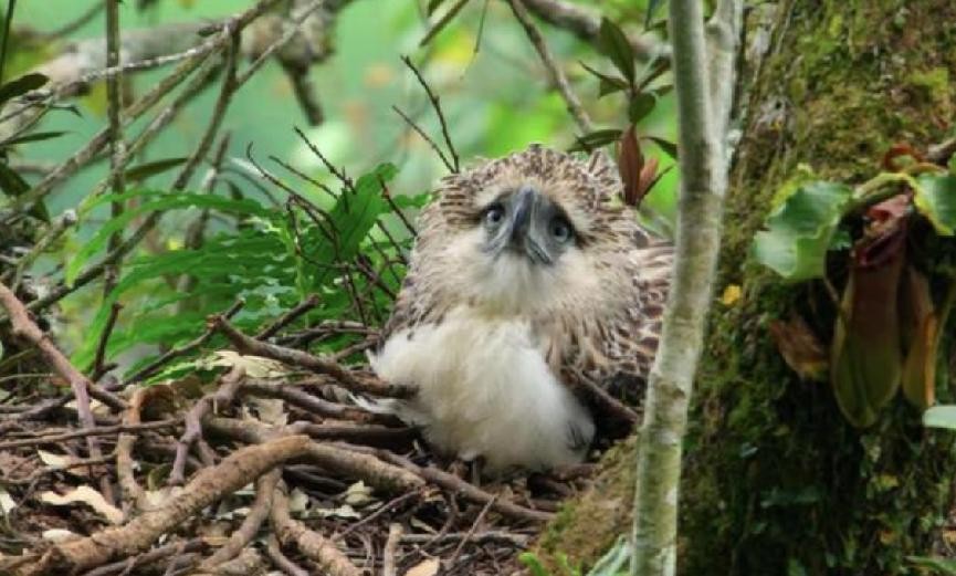 此外,食猿雕的自然繁殖率极低。不仅一次只能产一胎,而且幼仔长大到独立行走需要长达2年的时间。其中,由于森林锐减、外界侵害等各种原因,夭折的可能性极大。当幼鸟能够独自飞翔后,父母才能在第二年再次修建新的巢穴和繁殖。可见,新生命从孵化到成长的过程十分不易。
