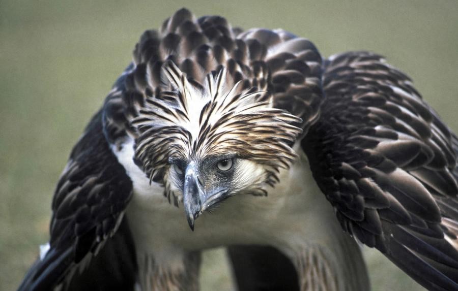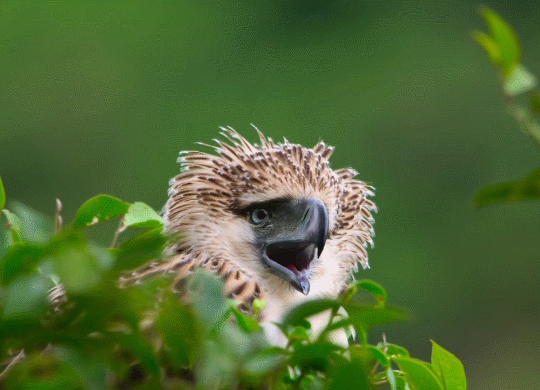 食猿雕分布于菲律宾的热带雨林中,其自身特质和攻击能力让它们在捕猎时如有神助。而作为猴子的天敌,为了让猎物更容易顺服,它们凭借着敏锐的洞察力和坚硬的嘴部将猴子迅速啄食,也因此塑造了一个残暴的形象。