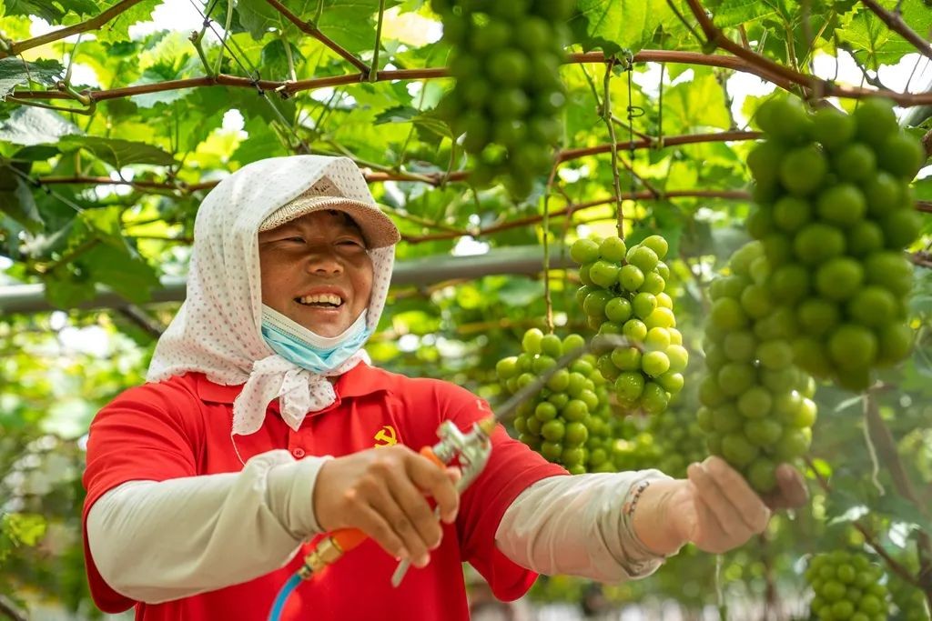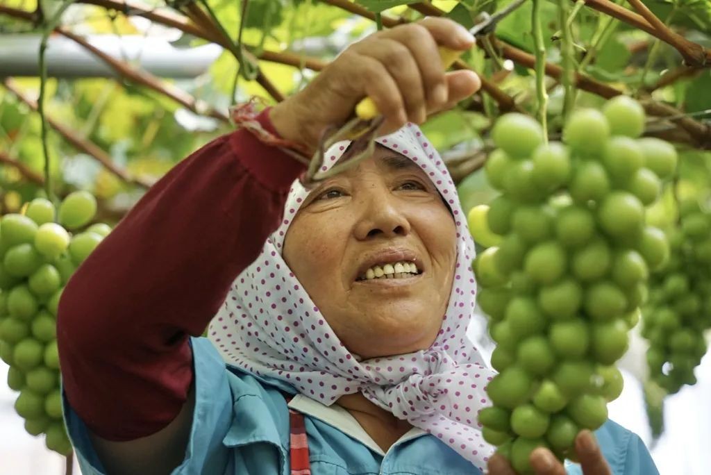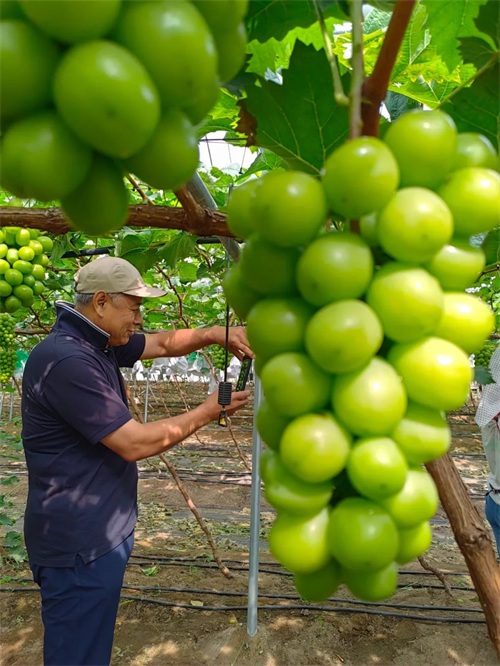 近年来,大连市现代农业生产发展服务中心持续加强科研攻关,指派专家将新品种、新技术送至“最后一公里”,指导企业和果农进行标准化建园栽植、标准化管理。今年,大连阳光金地农业科技示范园里的百亩"阳光玫瑰"丰收在即,标准化种植更让果农尝到甜头。
