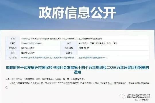 在今年市政府印发的宿迁市国民经济和社会发展第十四个五年规划和二0三五年远景目标刚要的通知中提出