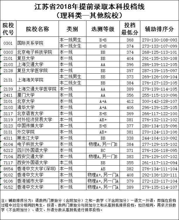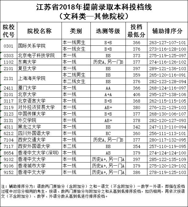 参考:2018年各批次投档线